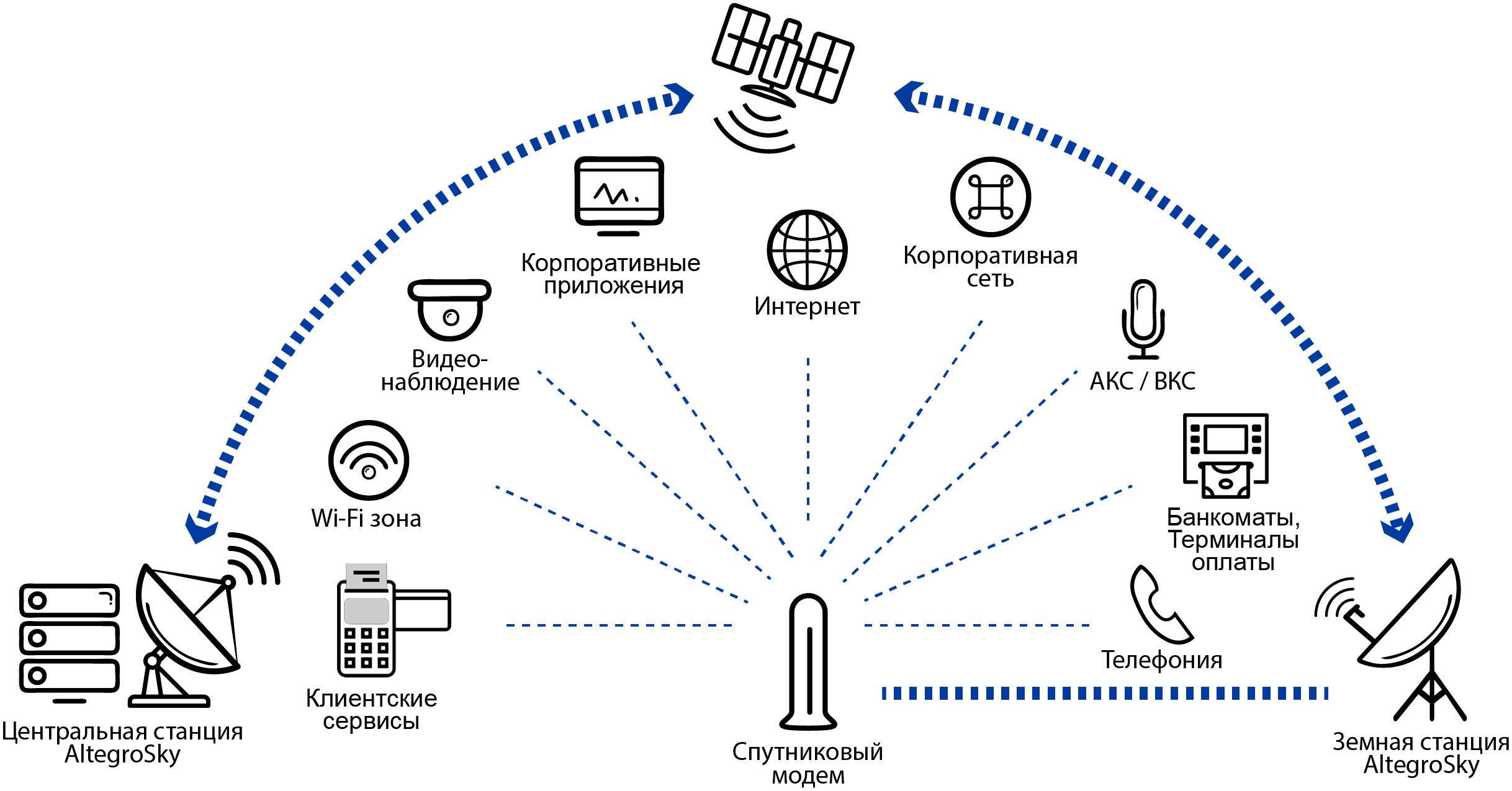 Возможности сетевой инфраструктуры AltegroSky позволяют нам предлагать услуги на основе спутниковых технологий для сотовых операторов, операторов телефонных сетей, интернет-провайдеров. -