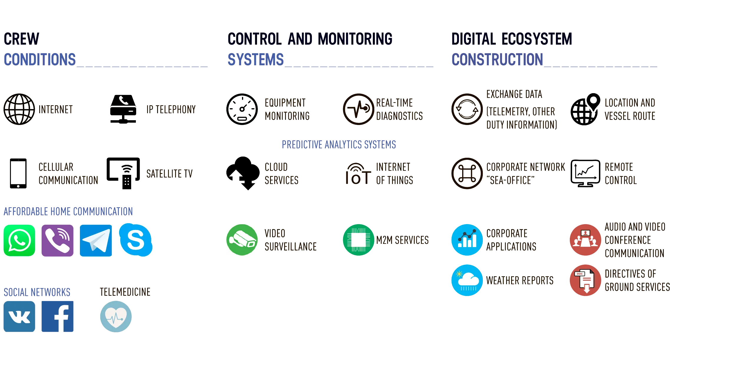 VSAT systems based on broadband satellite channels open new possibilities for building a communication infrastructure and allow the implementation of modern solutions in the field of operational management, safety and improvement of the crew stay conditions.