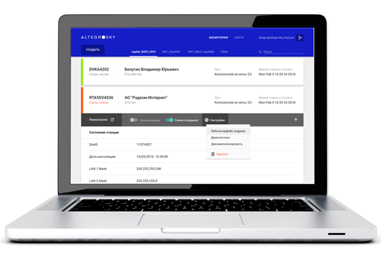 ГК AltegroSky в работе с виртуальными операторами реализует обе модели взаимодействия. Сервис имеет гибкие настройки под любую степень «погружения»: SVNO AltegroSky имеет возможность самостоятельно управлять выделенным спутниковым каналом, создавая в нем свои сети, тарифы, полностью управляя подключенными станциями.