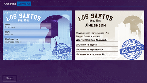 Graf Filianin, родился 06.03.2001 в штате San Andreas в городе Los Santos, окончил школу и устроился на работу , после решил вступил в ряды FIB, чтобы покончить с беззаконием в городе.