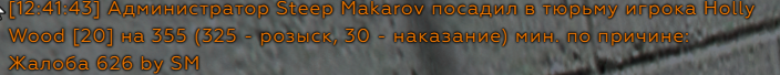 1. Ваш никнейм: HollyWood 2.Ваш уникальный UID:B4D6FE 3.Никнейм администратора:Steep Makarov 4. Суть жалобы:Посадил в тюрьму, за то что был без маски нари том что у меня маска маленькая была.Её не видно,тем более под каской...